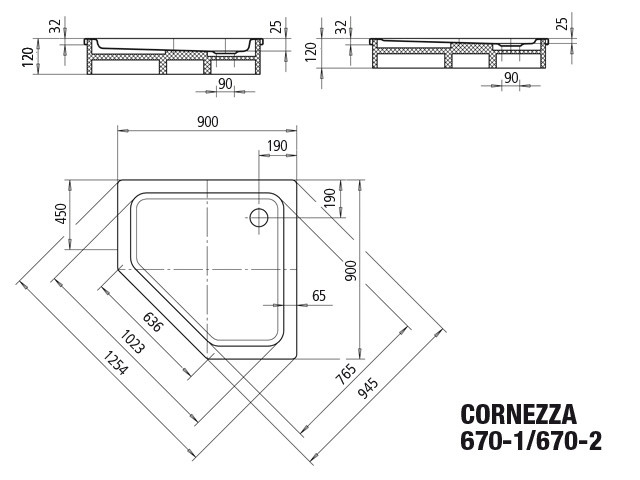 5-Eck Brausetasse Stahl-Email Kaldewei CORNEZZA 670-1 900x900x25 mm, schwarz