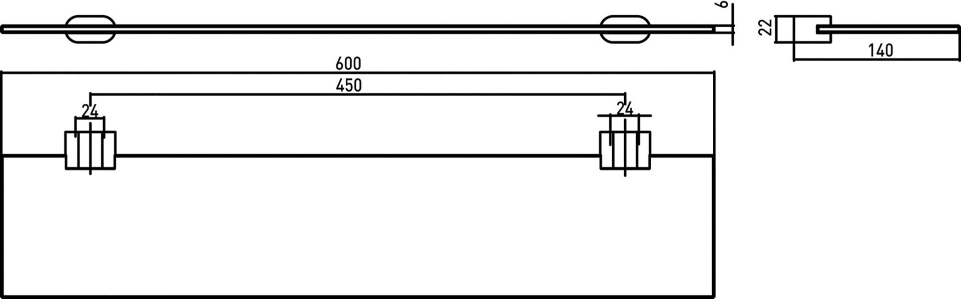 Ablage Optima L 010-7775 chrom, Breite 600 mm, Ausladung 140 mm
