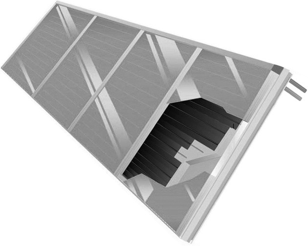 Fertigkollektor für Freiaufstellung in Hohlkammer-Rahmenprofil komplett verglast.