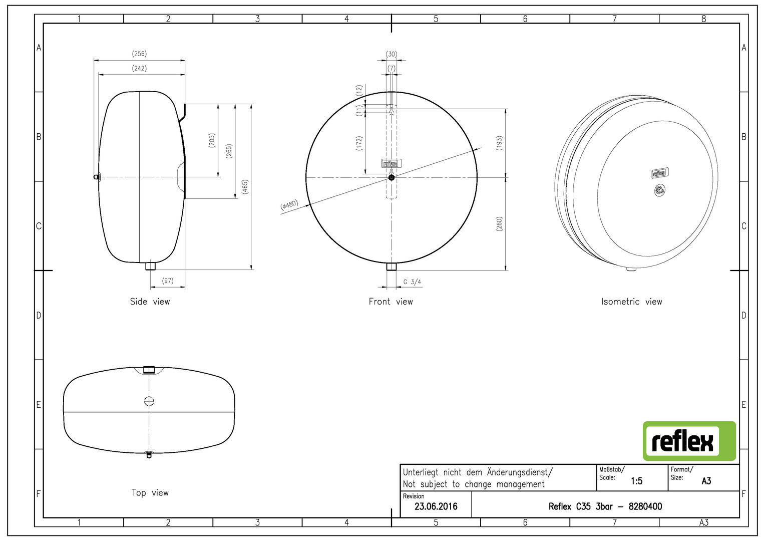 Ausdehnungsgefäss Reflex C 35 Diskus, grau, 3/4''AG unten, PN 3 bar, 505374