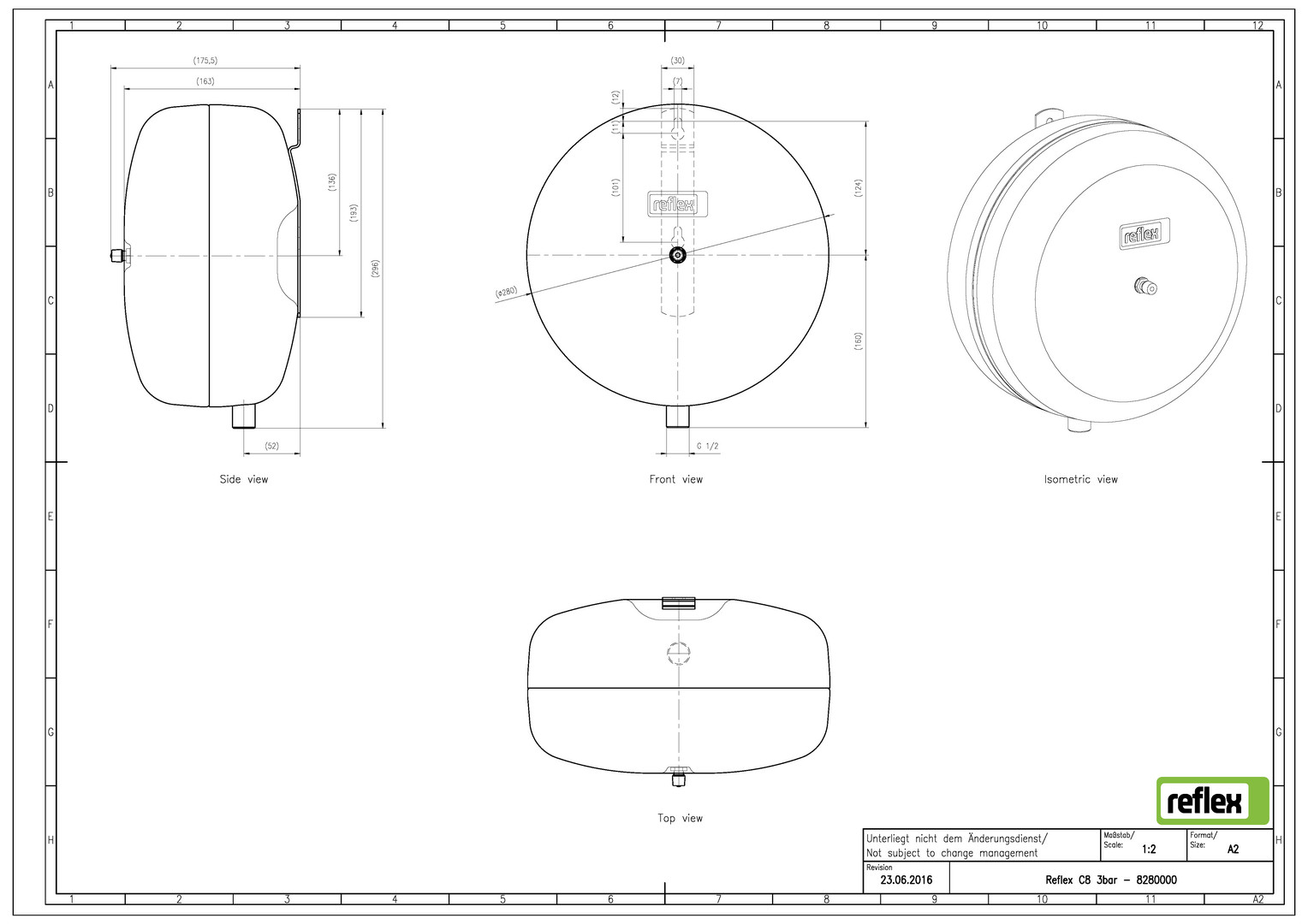 Ausdehnungsgefäss Reflex C 8 Diskus, grau, 1/2''AG unten, PN 3 bar,