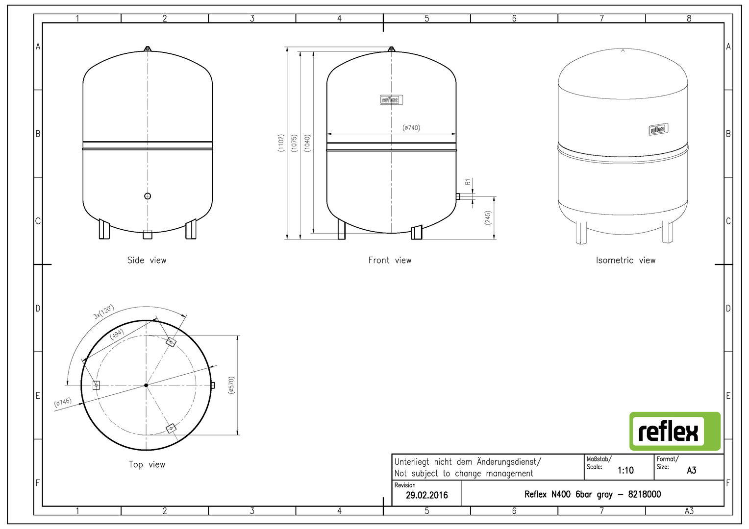 Ausdehnungsgefäss Reflex N 400 grau, 1''AG seitlich, PN 6 bar,