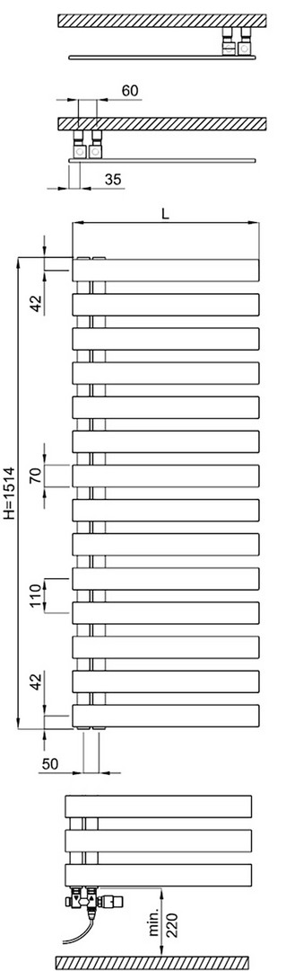 Badheizkörper Optima L [2] H1514xB600xT52, Titangraumetallic