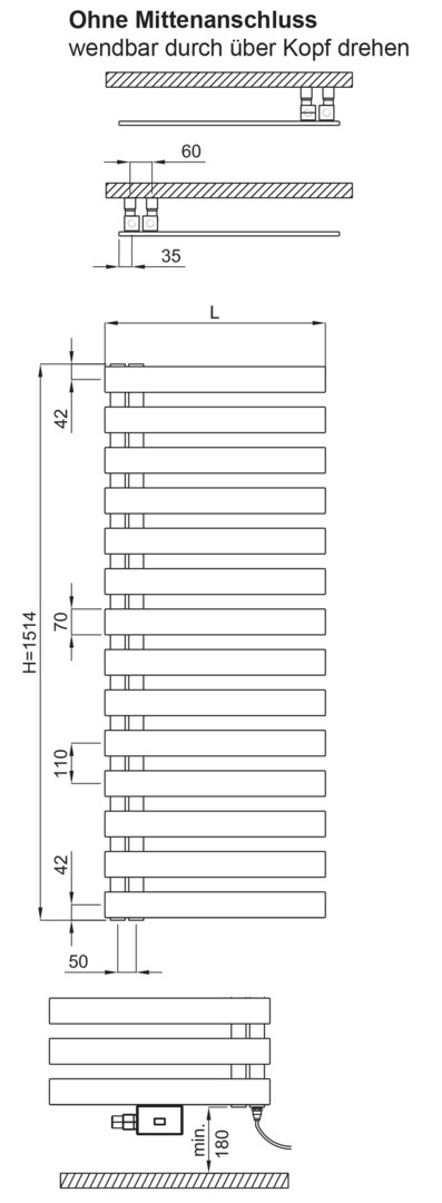 Wandabstand 40 - 55 mm, ohne Heizstab, für rein elektrisch Betrieb