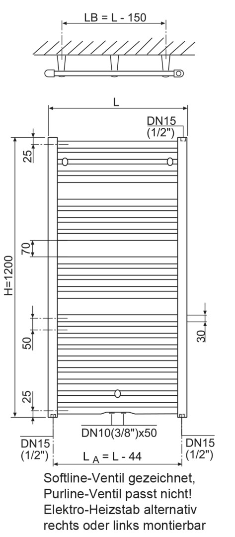 Wandabstand 55 - 70 mm, ohne Heizstab, für rein elektrisch Betrieb