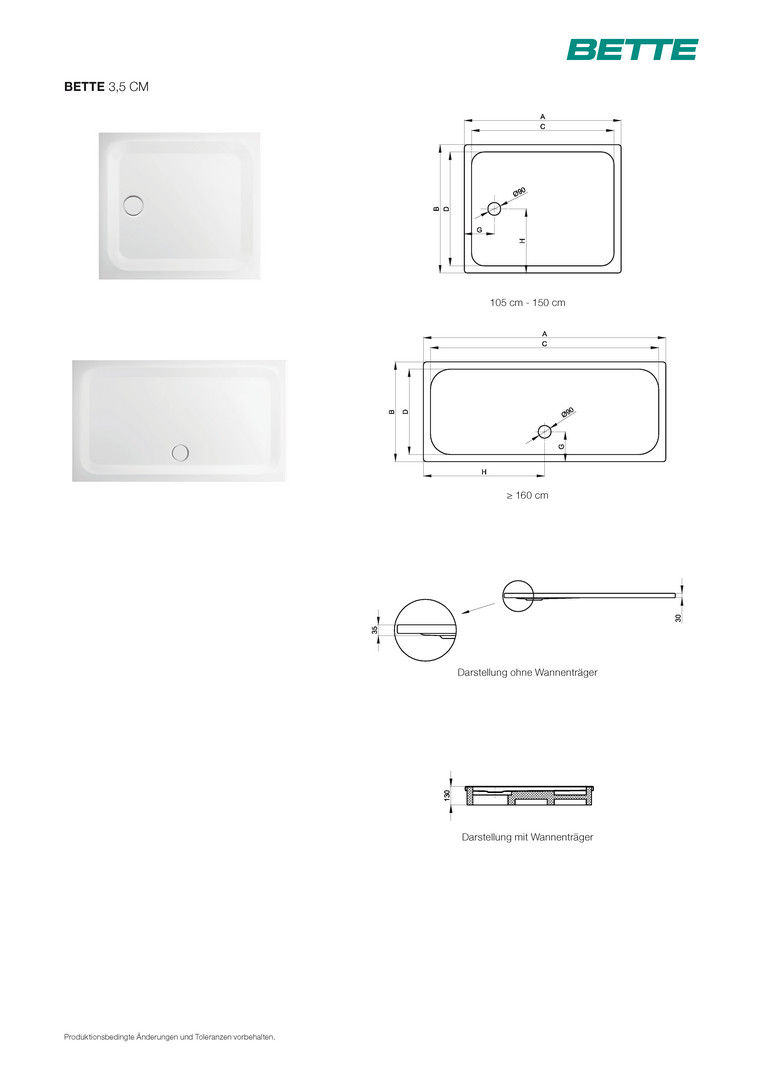 Brausetasse Stahl-Email Bette ULTRA 5996 1700x750x35 mm, weiss, GP 205239