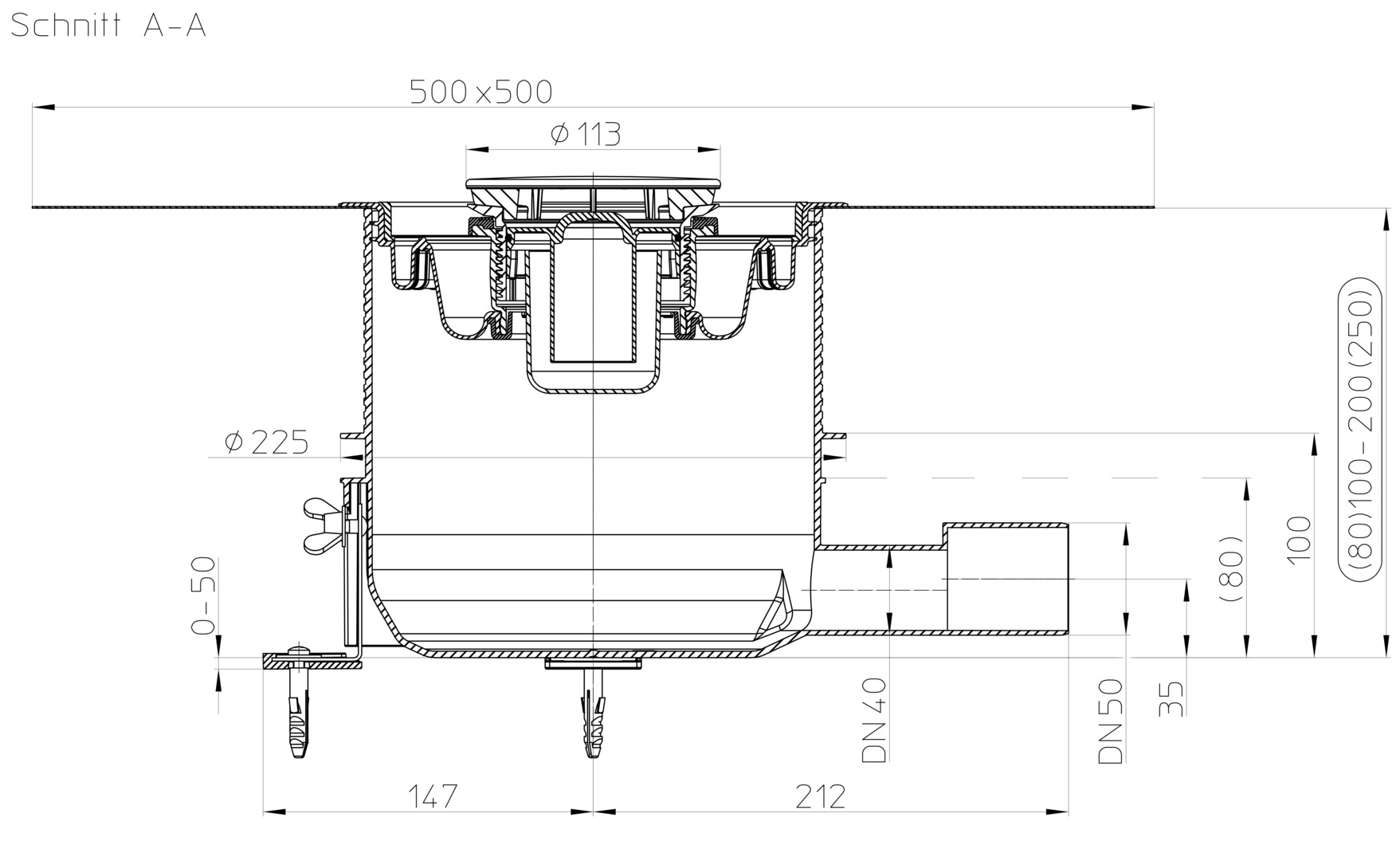 Einbauhöhe 80 - 250 mm, Estrichoberkante