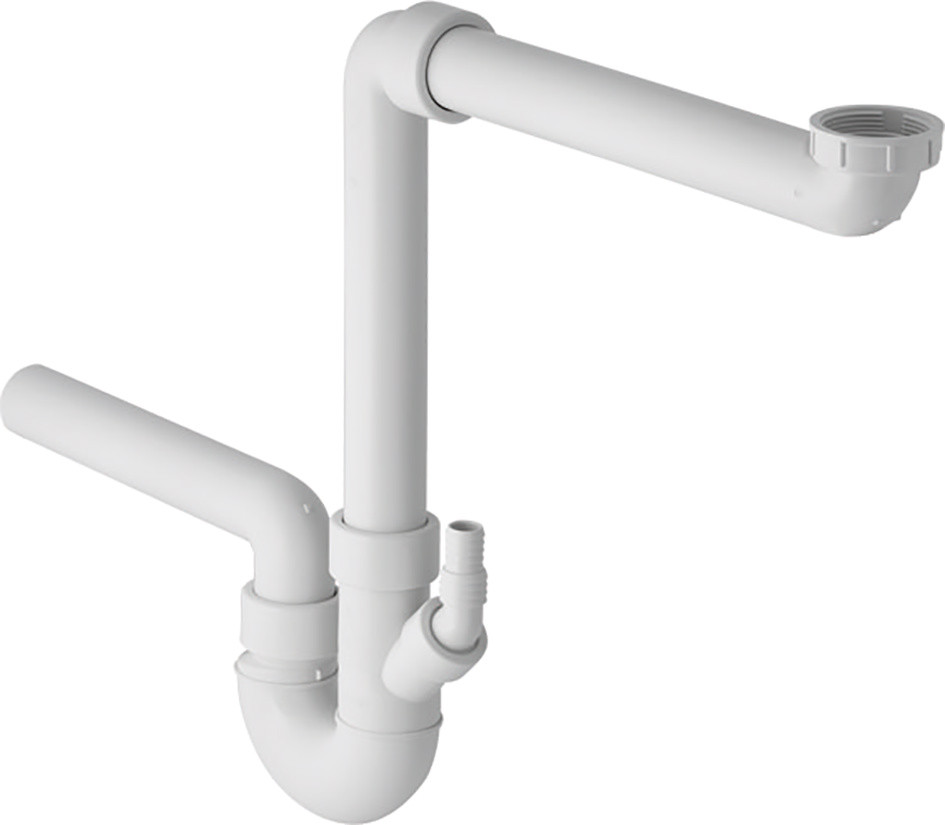 für Spültisch mit 1 Becken, Anschluss 1'' für Wasch- oder Geschirrspülmaschine am Doppelkammer-Geruchsverschluss, inkl. 1 Anschlussbogen mit Überwurfmutter, Blindkappe