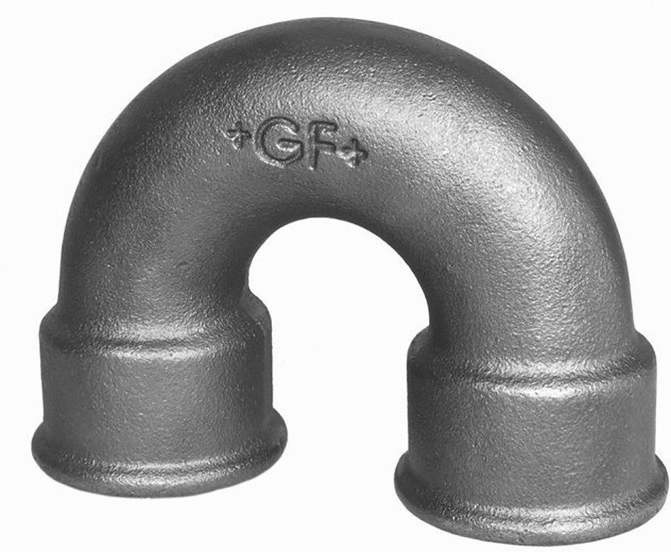 Doppelbogen 180° GF Temperguss 60 1/2''IG-IG, schwarz