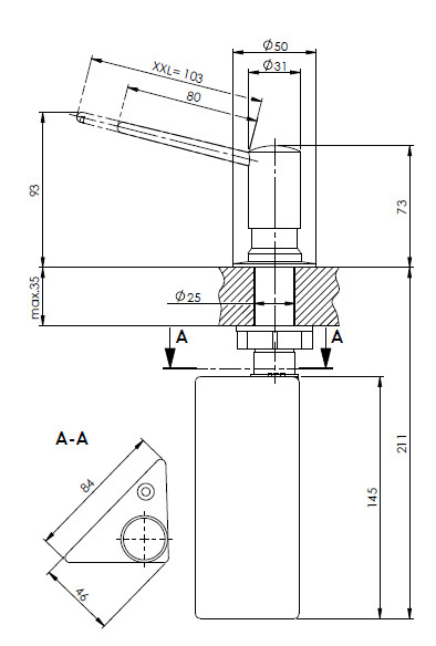 für Arbeitsplatten/Spülen max. Stärke 35 mm, für Lochbohrung D 25 mm