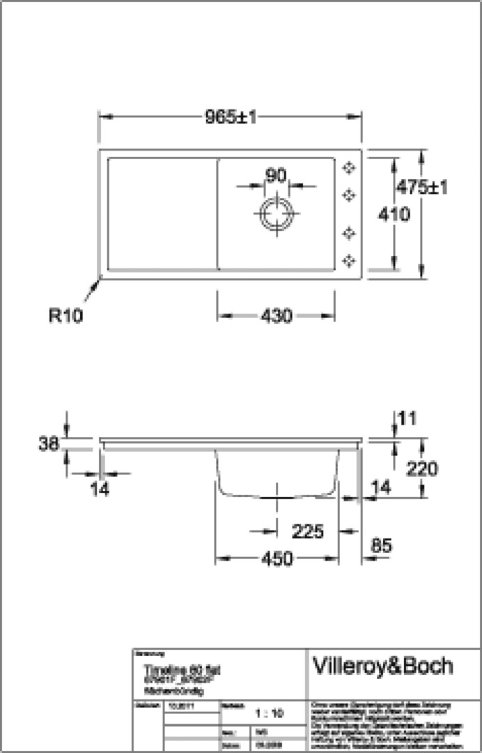 Einbauspüle Flächenbündig V&B TIMELINE 60 FLAT 6790.1F-i4 965x475 mm, Graphit CeramicPlus