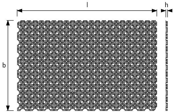 als stabiler und niedriger Rohrträger mit integrierter Rohrführung zur normgerechten Einhaltung von Verlegeabständen für die Aufnahme von MINITEC COMFORT PIPE 9.9x1.1 mm, Rohrverlegung gerade und diagonal möglich, mit hinterschnittenen, tiefgezogenen Rohrhaltenoppen, zweiseitiger Überlappung mit Dreiecksnoppen in gelochter Ausführung für einen Verbund zwischen Ausgleichsmasse und Untergrund, rückseitig klebebeschichtet zum sicheren Halt auf ebenen Estrich- und Fliesenuntergründen Polystyrol verkehrsschwarz, ca. RAL 9017, Baustoffklasse nach DIN 4102 B2