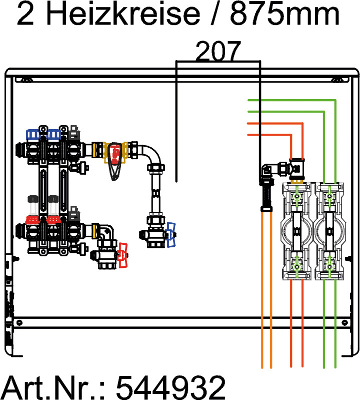 Fussbodenverteilerstation 2-fach m. WMZ KW/WW rechts, Inl.-Setter, VR n. im Kast 544932