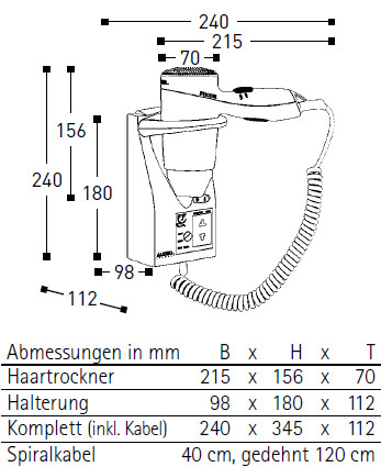 Hand-Fön Aliseo PHOENIX R 010225 weiss/grau, feste Wandmontage 197880