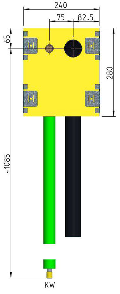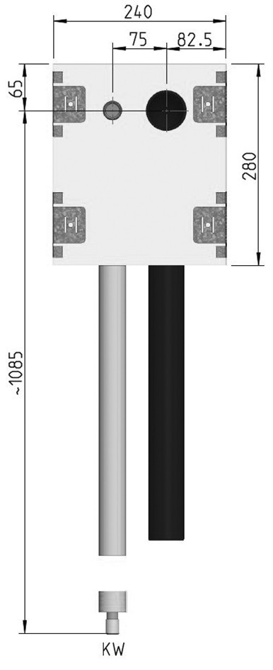 Leitungslänge Ab Auslauf 1085mm, Raxofix 16, 9mm Isoliert, Wandauslass 1/2''IG, 35 mm vorstehend, AD KW-Ablauf 75 mm, Ablauf Geberti 56/56 mm, von rechts 82.5 mm nach links, Boxengrösse 280x240x70 mm