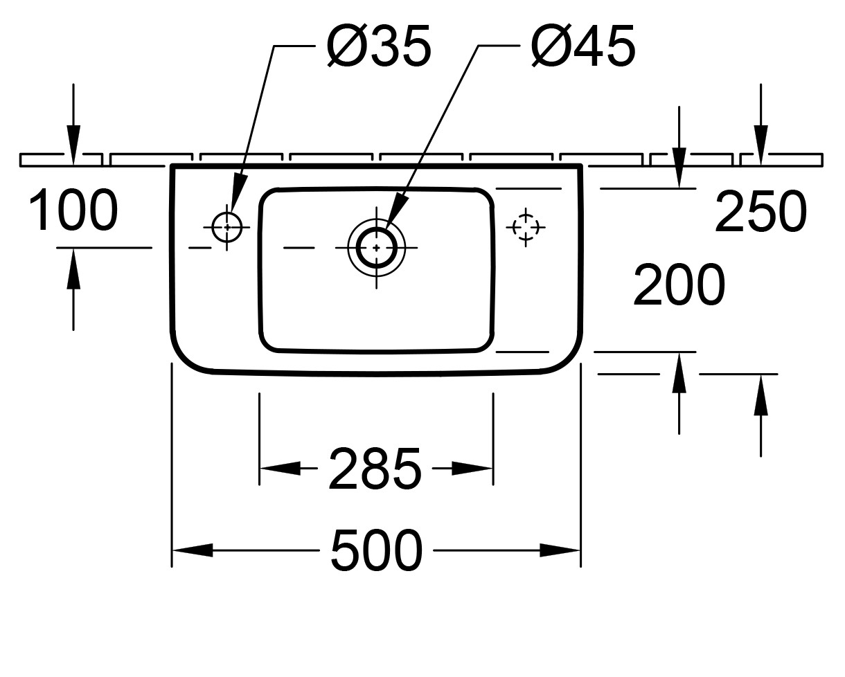 Handwaschbecken V&B O.NOVO 4342.L5 500x250mm, m.HL, m.ÜL, weiss CP 566726