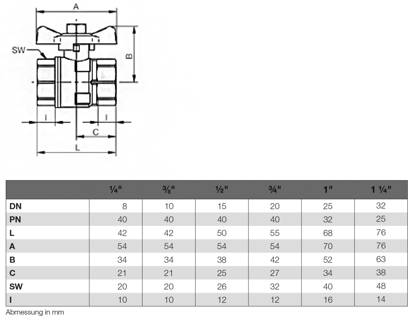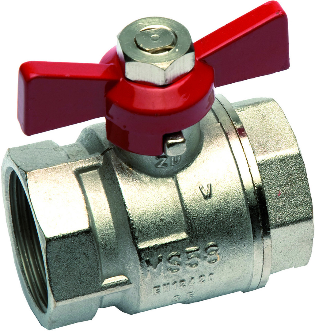 Heizungskugelhahn, vernickelt Optima T 1/2''IG, PN 40, Flügelgriff rot, Messing