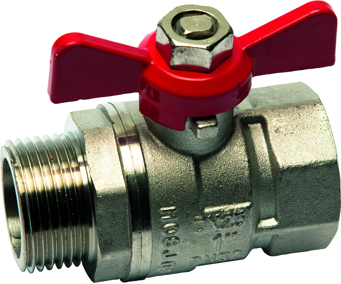 Heizungskugelhahn, vernickelt Optima T 1/2''IG/AG, PN 40, Flügelgriff rot