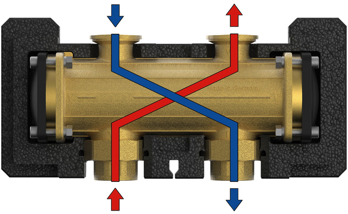 Hydraulische Weiche PAW 374203 bis 80 kW, messing, Bauhöhe 100 mm