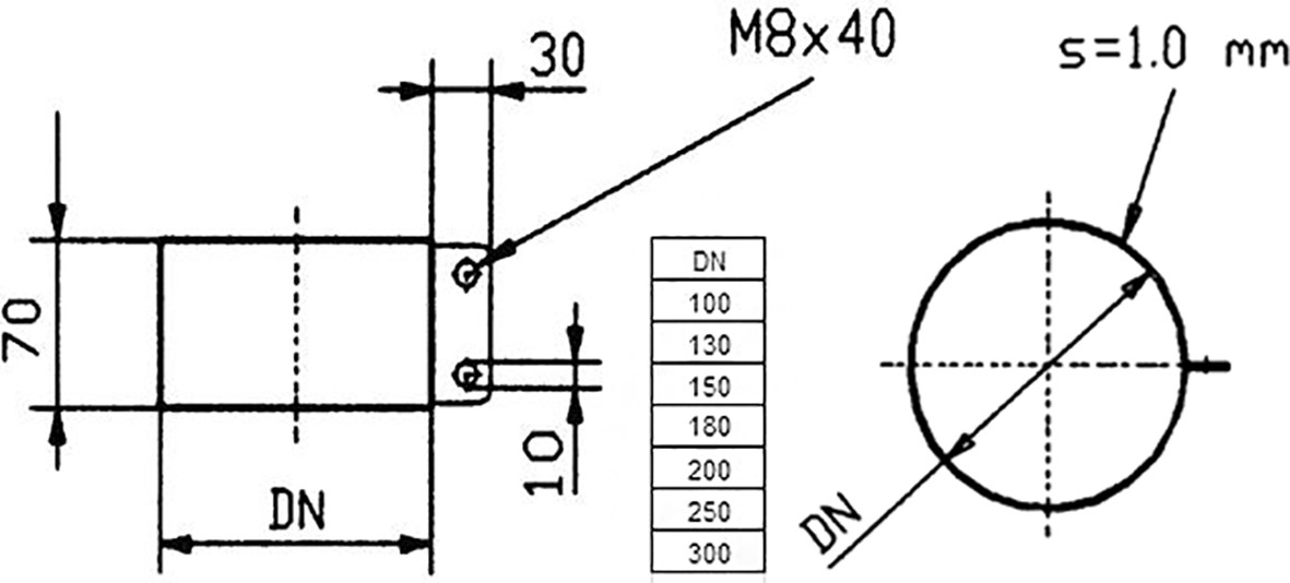 I8230 Verbindungsbride V4A mit Glasfasereinlage, DN 300