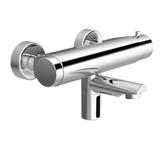 Auslauf starr, Ausladung 200 mm, Anschlussverschraubungen 1/2''AG-3/4''AG AD 150+/-12 mm exzentrisch, nicht absperrbar, mit Iqua-Klick für Kurz-Aus (Reinigung) und Dauer-Ein (Befüllen), Laufzeiteinstellung für Dauer-Ein, Wassernachlaufzeit, Sensorempfindlichkeit, 24-Stunden-Hygienespülung