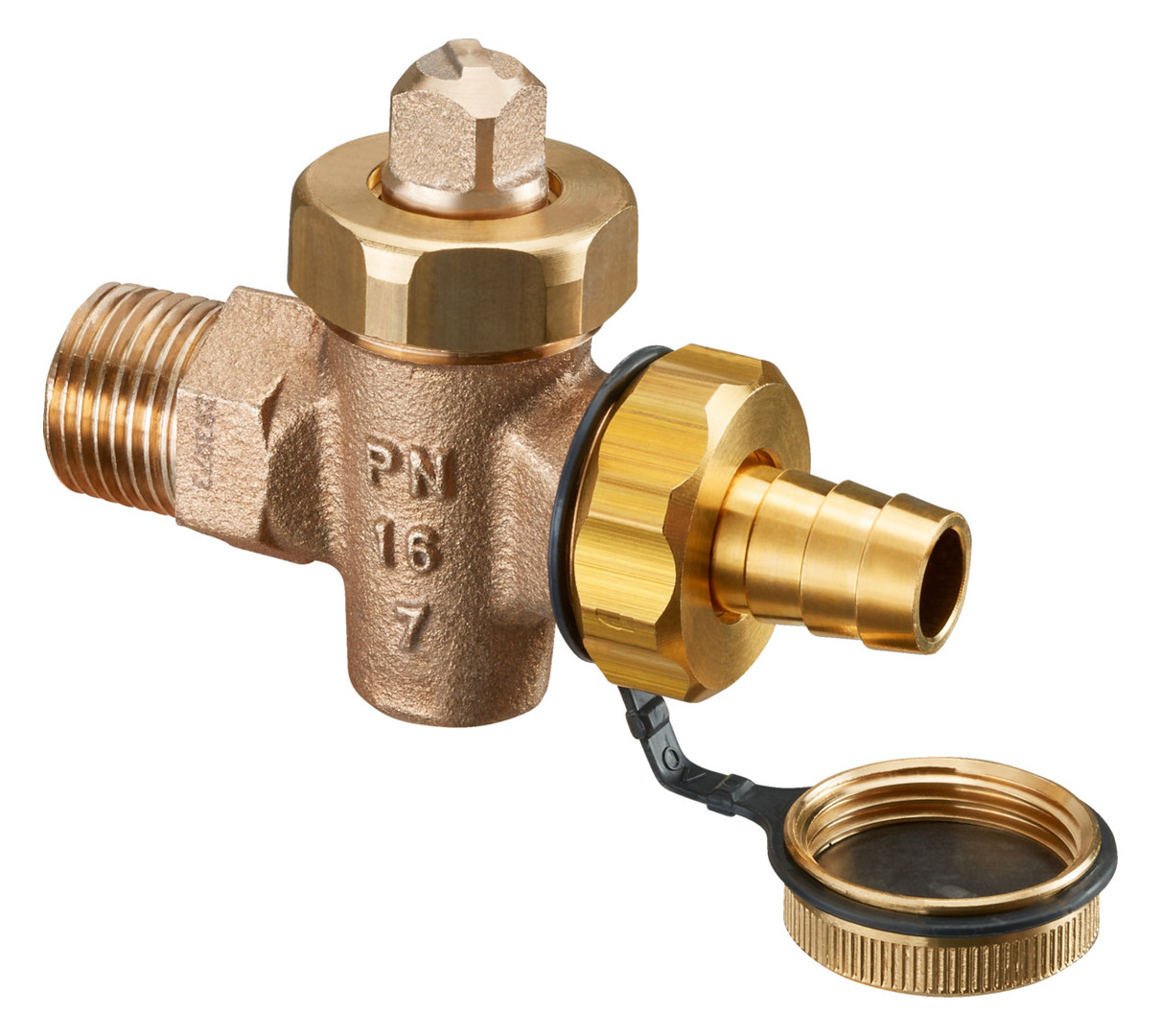 mit Vierkantoberteil, mit Schlauchverschraubung und Kappe aus Messing