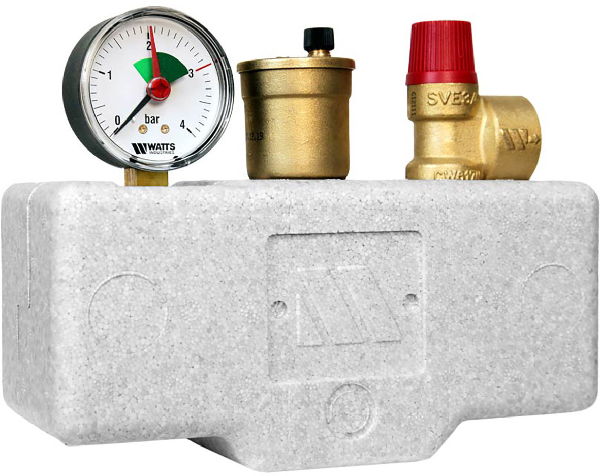 inkl. Isolierung, fertig zusammengebaut mit Sicherheitsventil 3 bar, Manometer