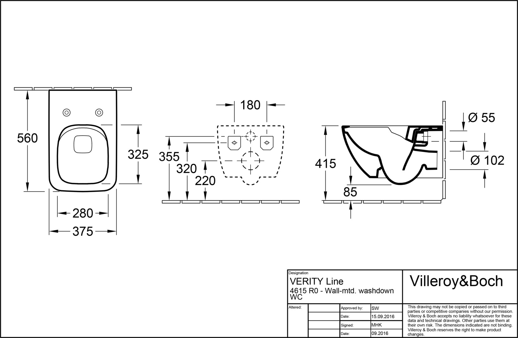 Kombi-Wand-WC Tiefspüler SMARAGD VERITY LINE 4615.RL 375x560mm, weiss