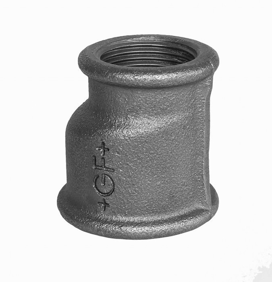 Red-Muffe, exzentrisch GF Temperguss 260 6/4''IG-3/4''IG, schwarz