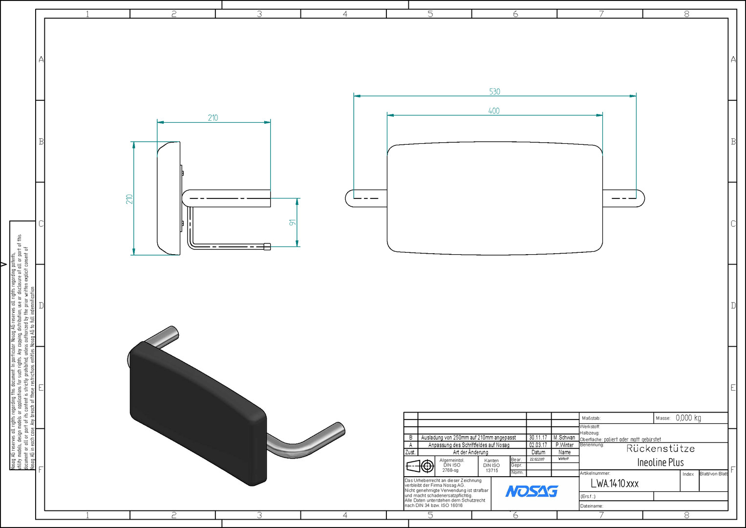 Rückenstütze Nosag INEOLINE PLUS LWA.1410.525 530x200 mm, Edelstahl, hochlanz poliert