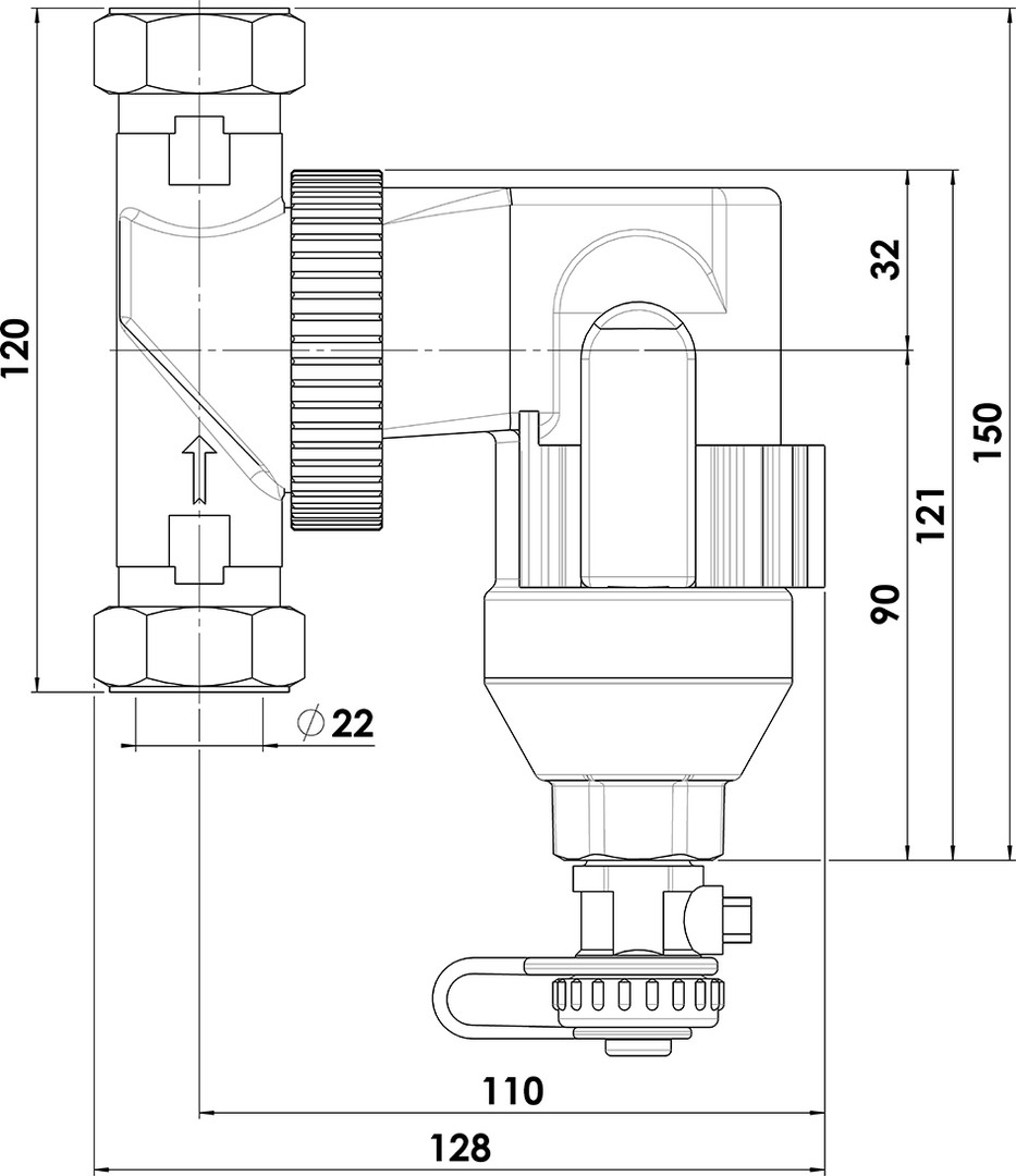 Schlamm- u. Magnetitabscheider Optima T 22 mm, 360° drehbar, Magnet abnehmbar 560342