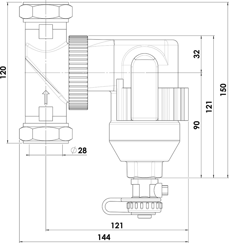 Schlamm- u. Magnetitabscheider Optima T 28 mm, 360° drehbar, Magnet abnehmbar