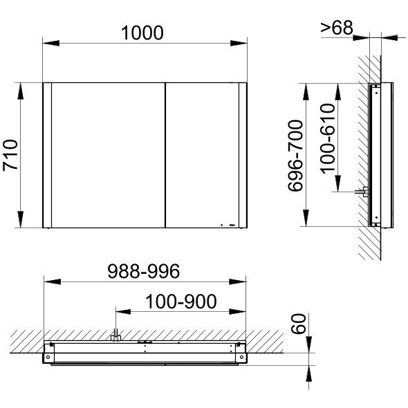Spiegelschrank SAPHIR LUNA 1.2 43413.002200 B1000xH710xT115 mm, verspiegelt