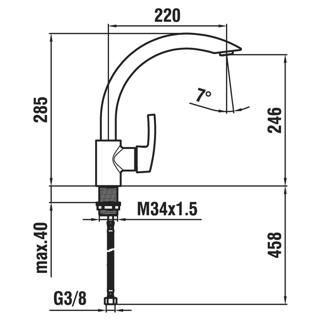 Perlator M24x1 AG, 7° schräg, Höhe Perlatormitte 246 mm
