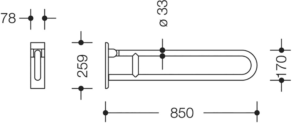 Stützklappgriff Hewi 805 805.50.120 Edelstahl geschliffen, Ausladung 850 mm