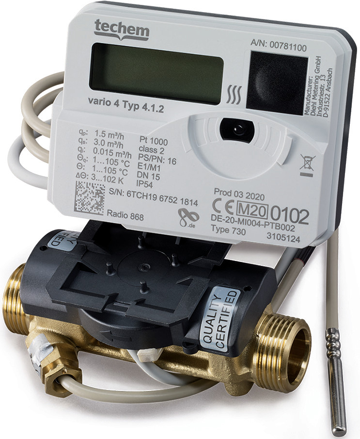 US Wärme-/Kältezähler Techem VARIO 4.1.2 qp 2.5 m³/h, 1''AG, EB 130 mm