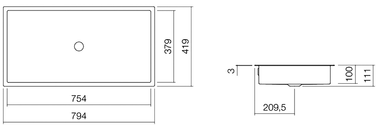 Beckenmulde 754x379 mm, innen und aussen glasiert
