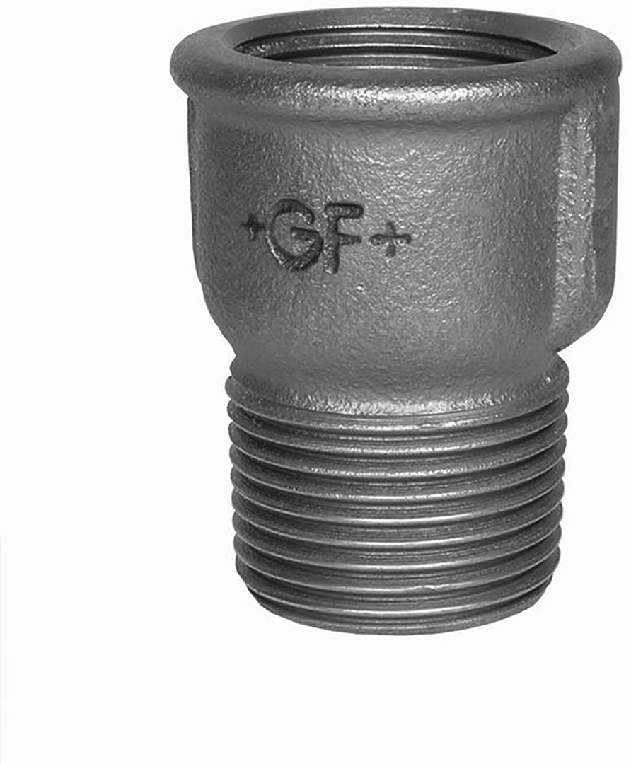 Verlängerung GF Temperguss 529A 6/4''IG-AG, schwarz, Gesamtlänge 63 mm