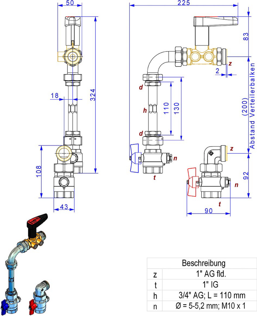 | Beschreibung 1 Ballorex<br>Zoll | 3/4 |
