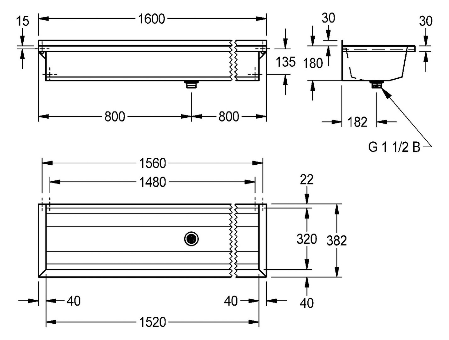 Waschrinne KWC PLANOX PL16 CNS, B 1600 mm, H 210 mm