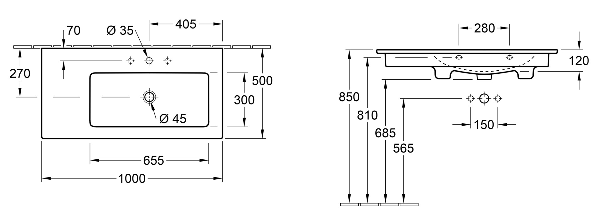 Waschtisch V&B VENTICELLO 4134.R1 1000x500mm, m.HL, m.ÜL, weiss 514097