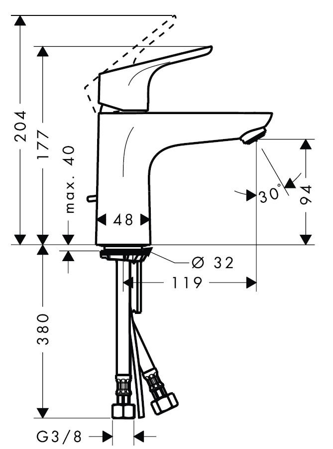Waschtischmischer Hansgrohe FOCUS 31517-000 o.Ablgarn., Ausld. 119 mm, chrom 480744