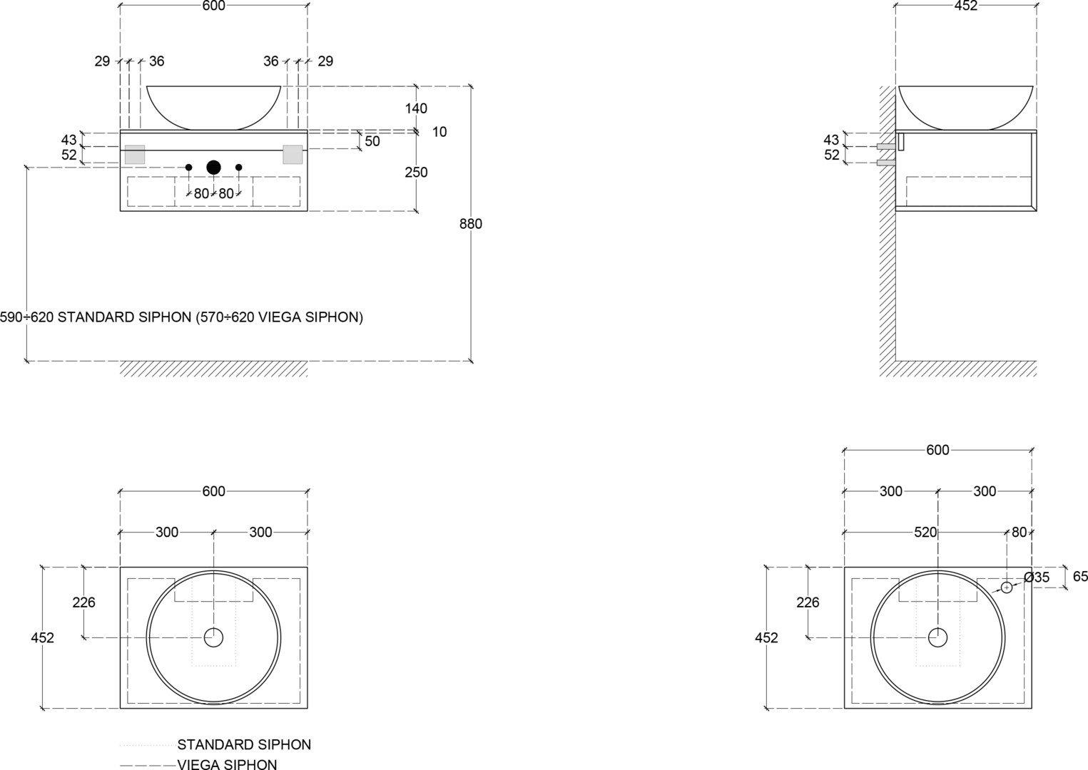 Waschtischverbau #ZN B 600 x T 450 x H 250 mm, schwarz