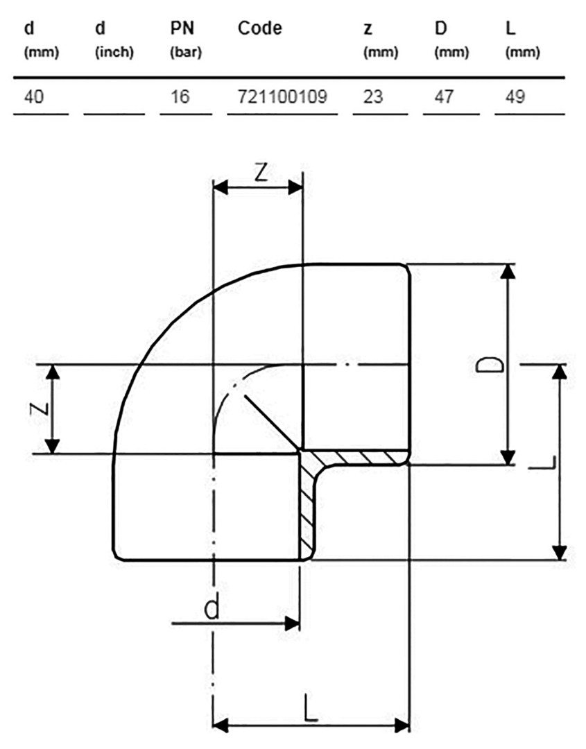 Winkel 90°, egal PVC-U PN16, D 40 mm