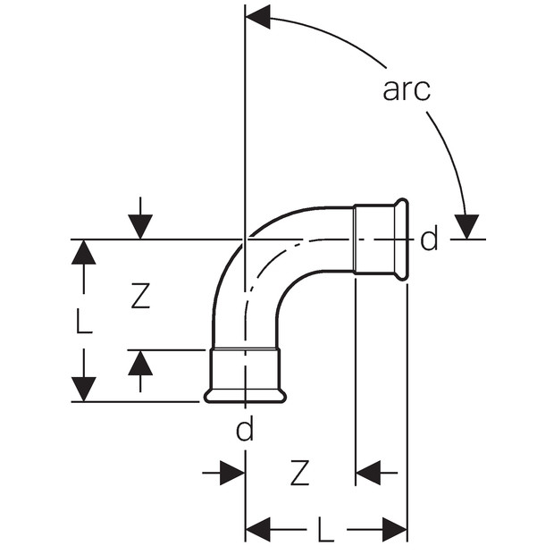 20103 Bogen 90° MAPRESS C-Stahl Geberit MAPRESS C-Stahl 20103 18 mm 10760