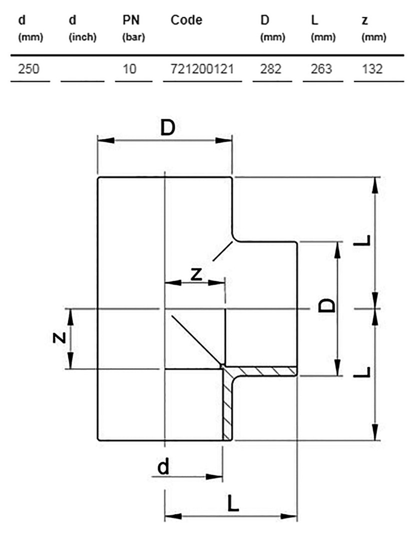 T-Stück 90°, egal GF PVC-U 721.200.121 PN10, D 250 mm