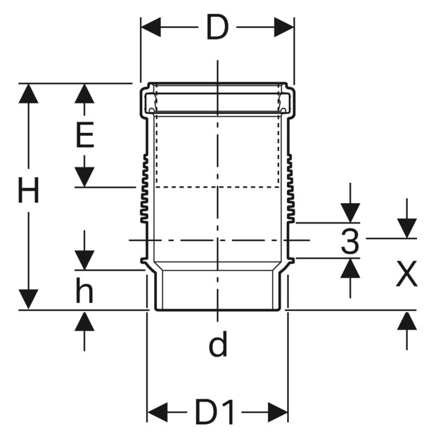 Langmuffe GE SILENT-DB20 307.012.14.1 mit Doppelbund, D 75 mm 40880