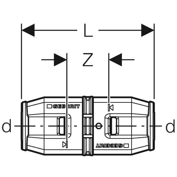 Kupplung egal Geberit PUSHFIT 650.500.00.1 PVDF, PF 16 - 16, Länge 74 mm 444623