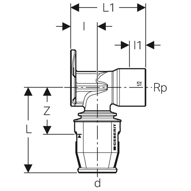 Wandanschlusswinkel 90° Geberit PUSHFIT 651.281.00.1 Rotguss, PF 20 - 1/2''IG