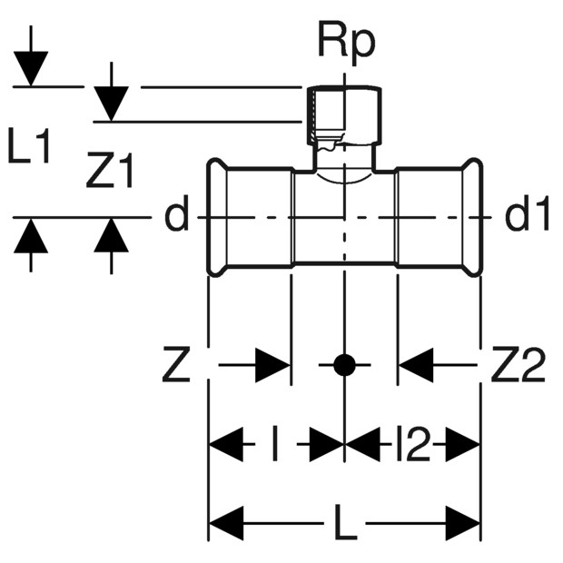 T-Stück Geberit MAPRESS Edelstahl 31310 28 mm - 3/4''IG - 28 mm